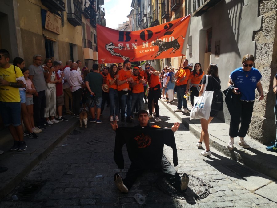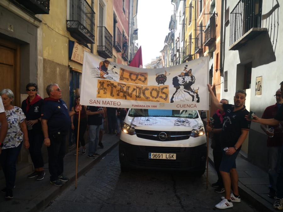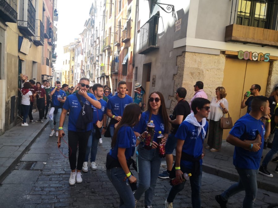 Las peñas llegan a la anteplaza para dar comienzo al pregón y con él a las fiestas de San Mateo 2022