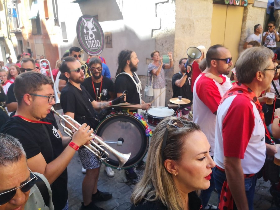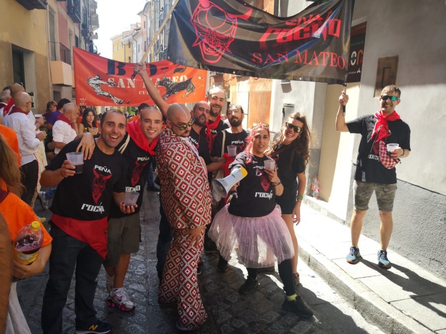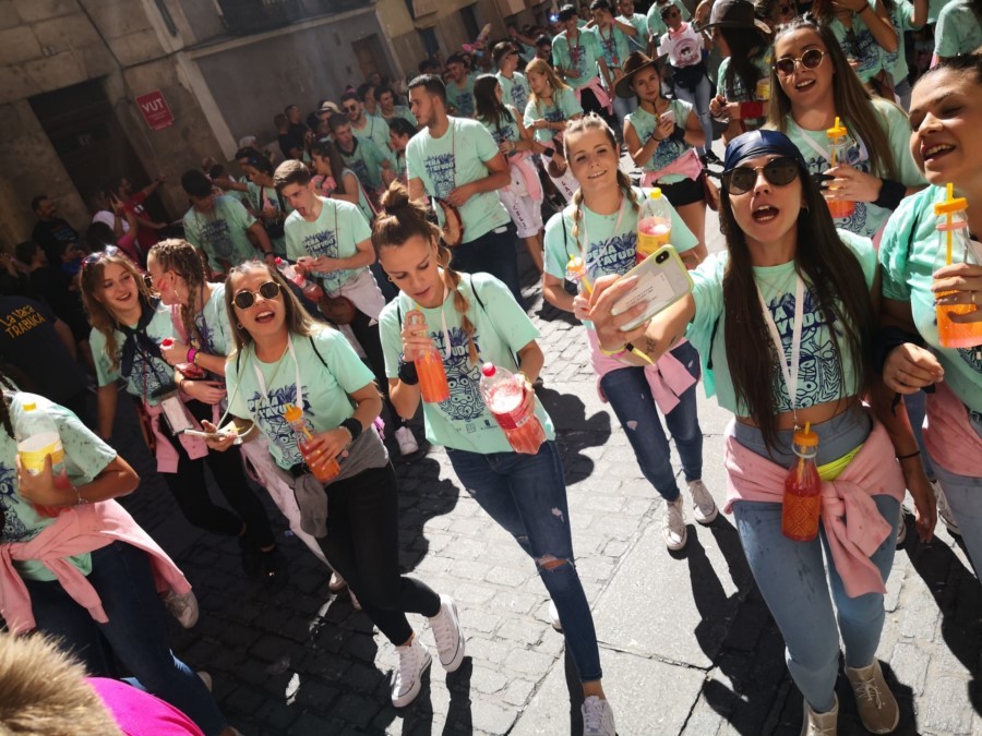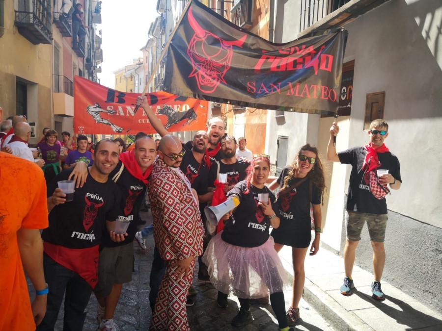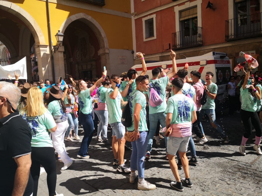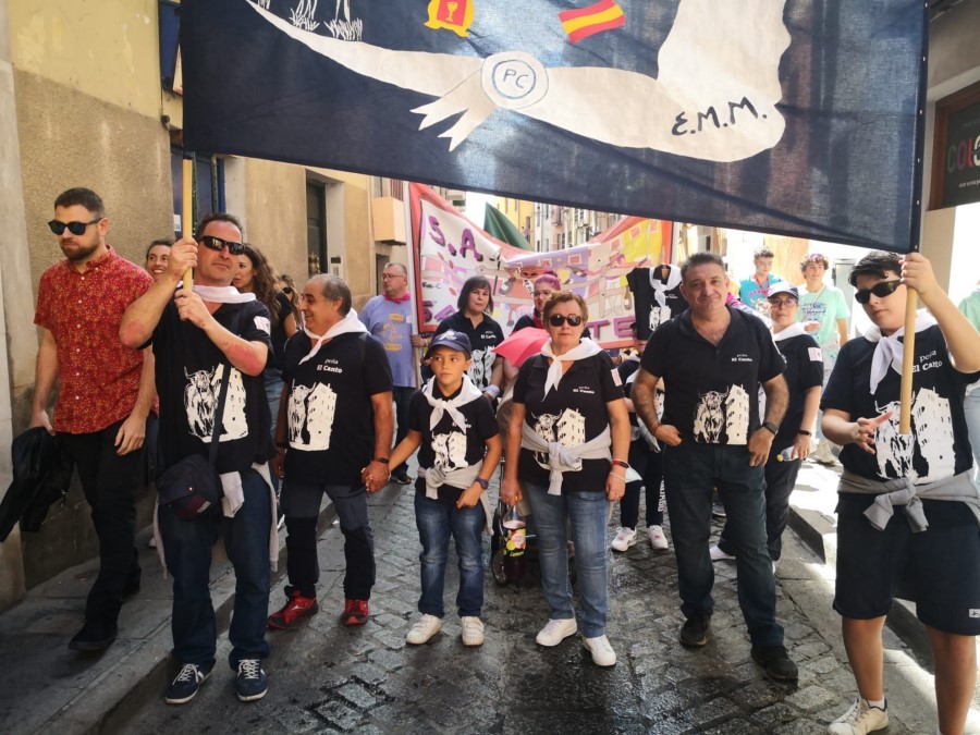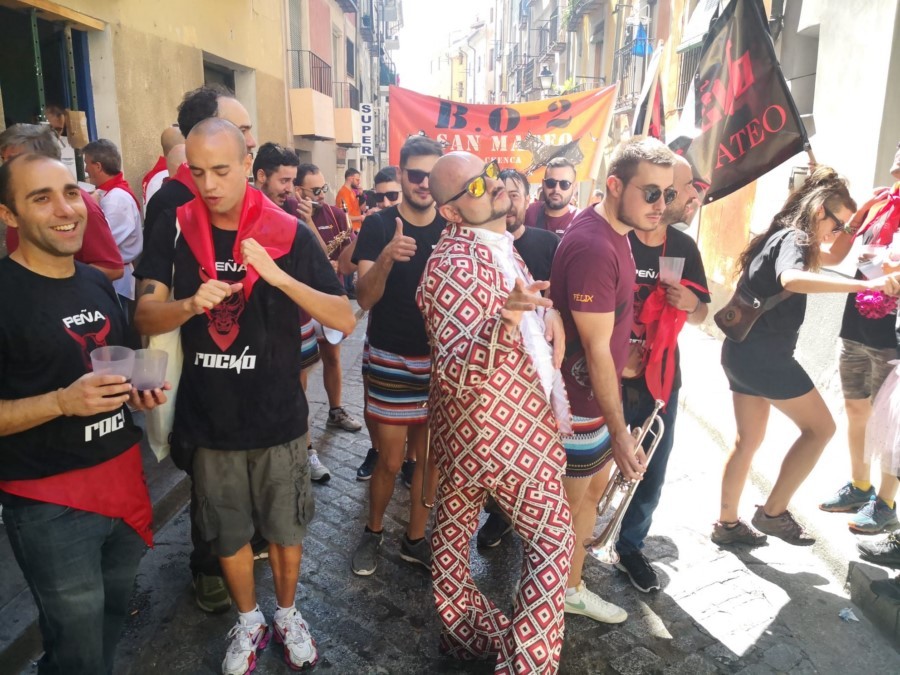 Las peñas llegan a la anteplaza para dar comienzo al pregón y con él a las fiestas de San Mateo 2022