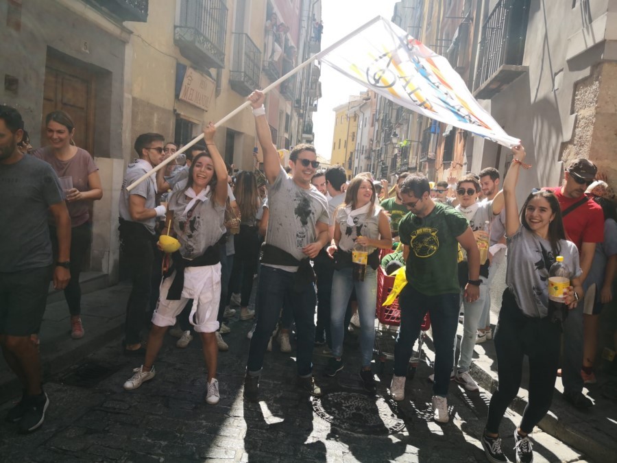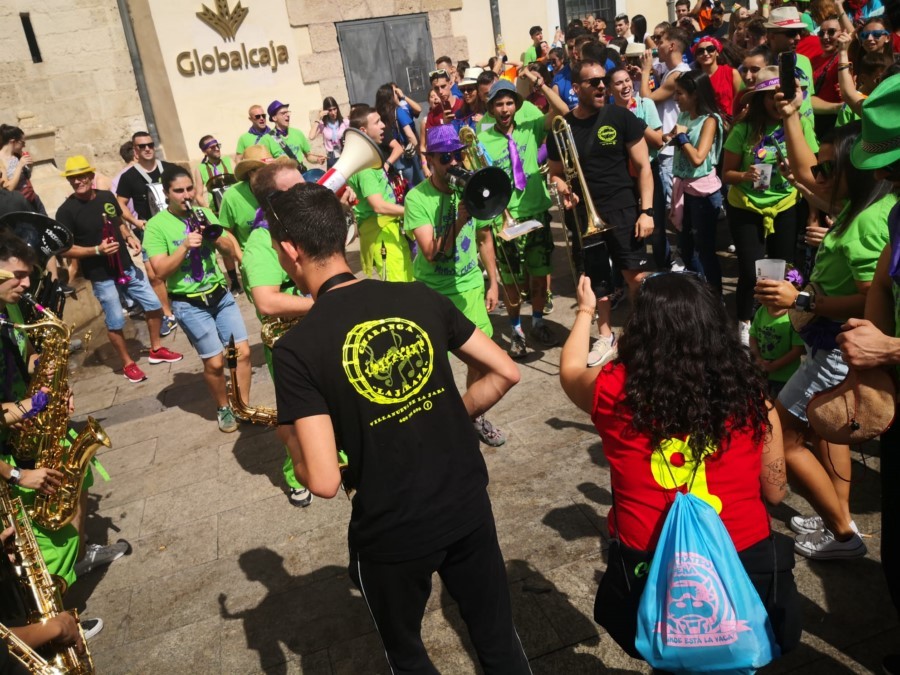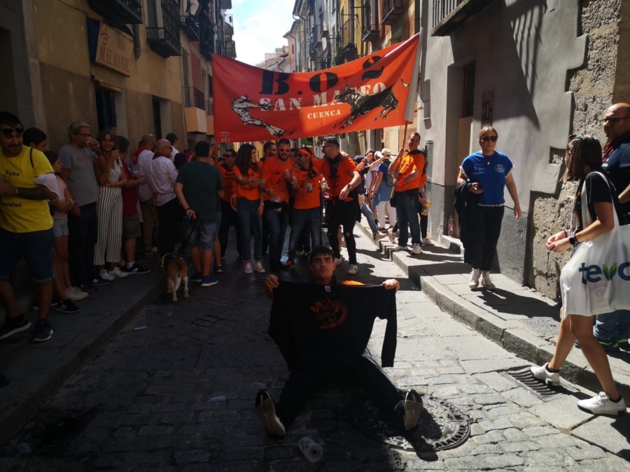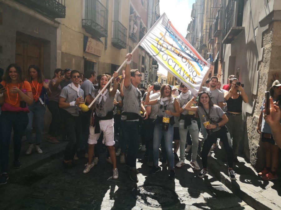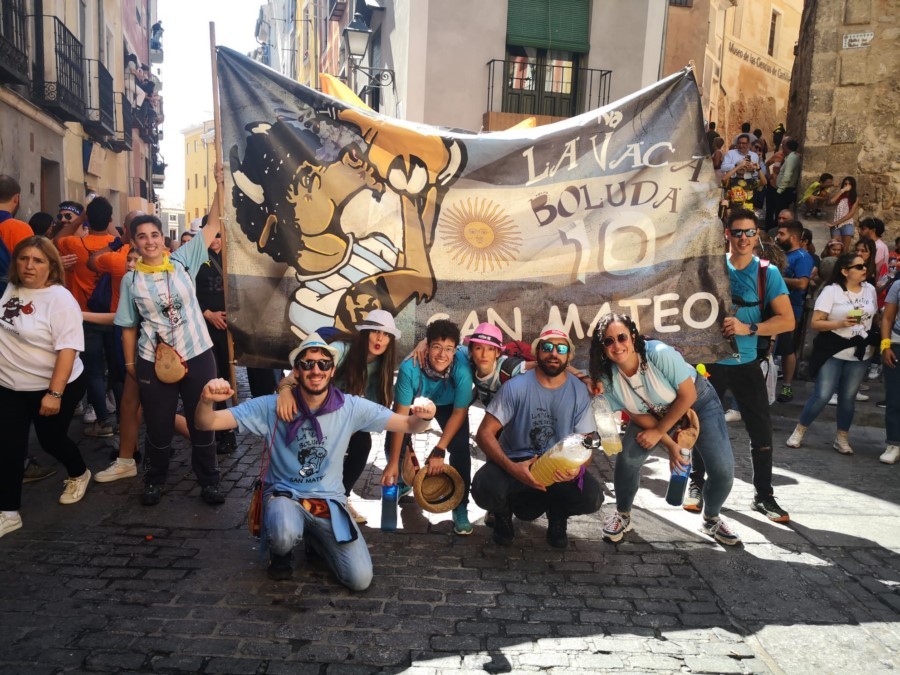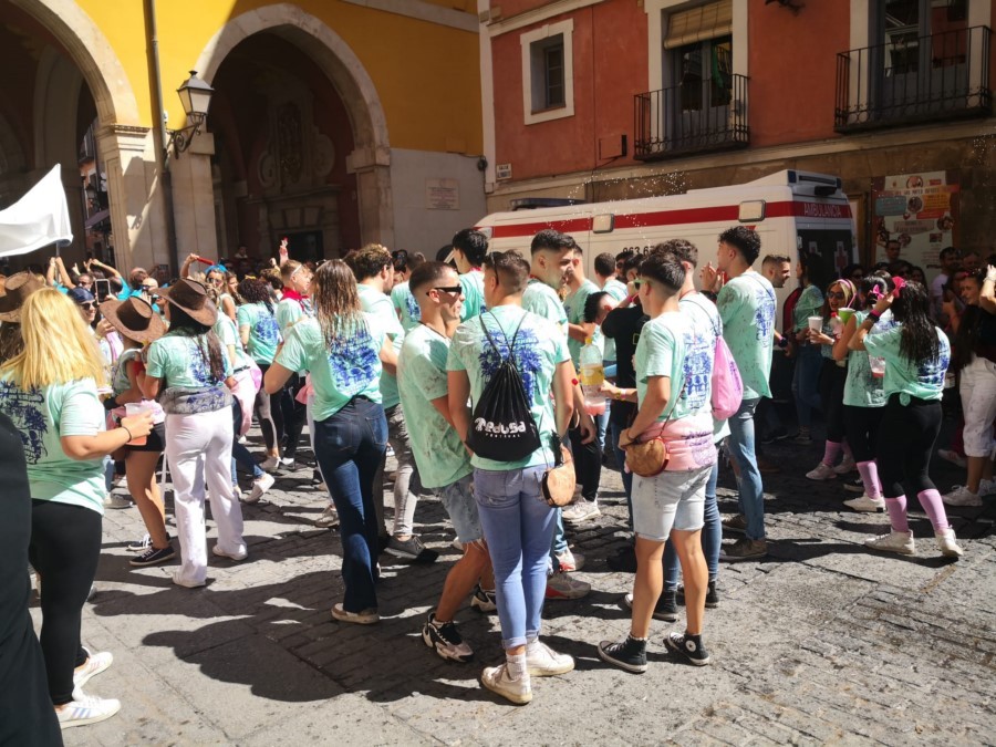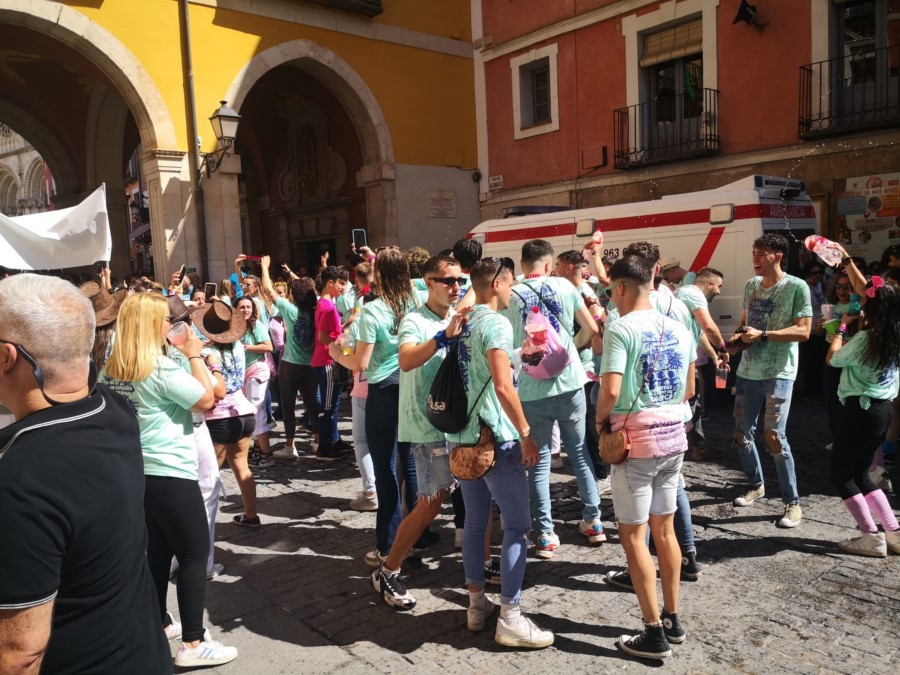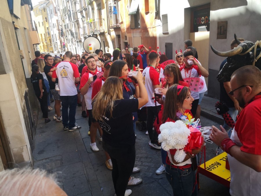 Las peñas llegan a la anteplaza para dar comienzo al pregón y con él a las fiestas de San Mateo 2022