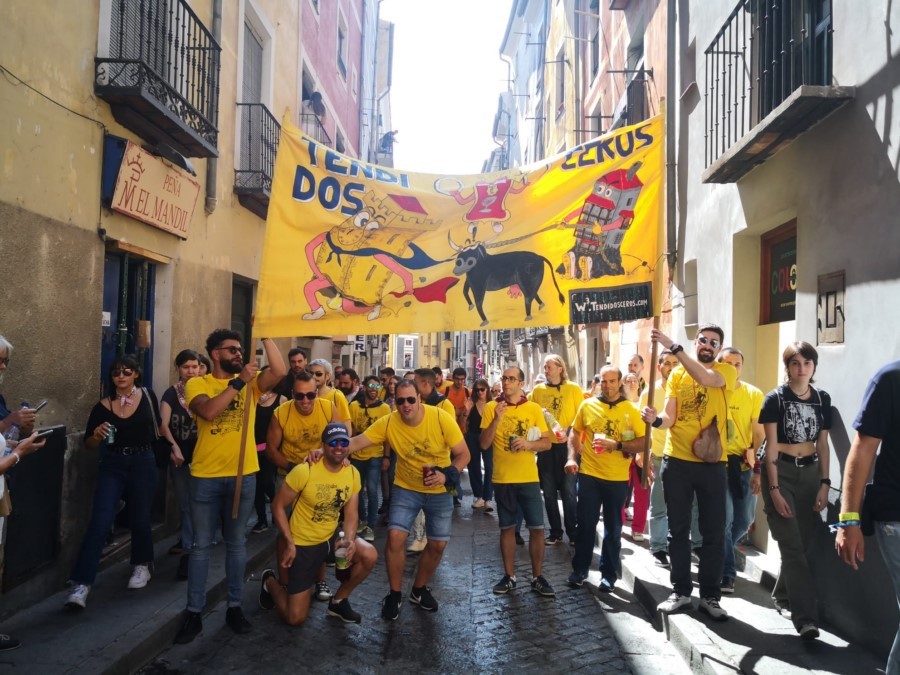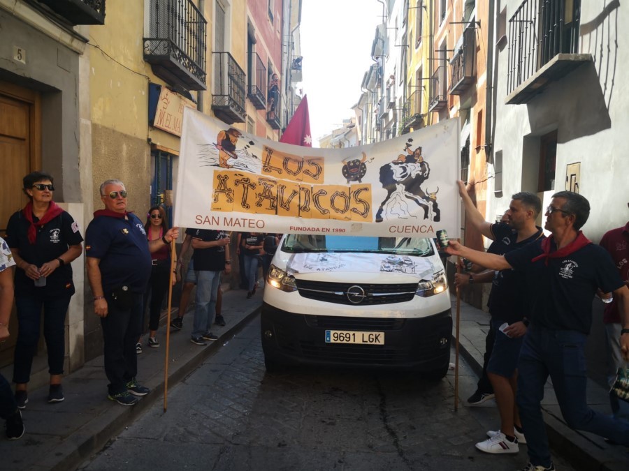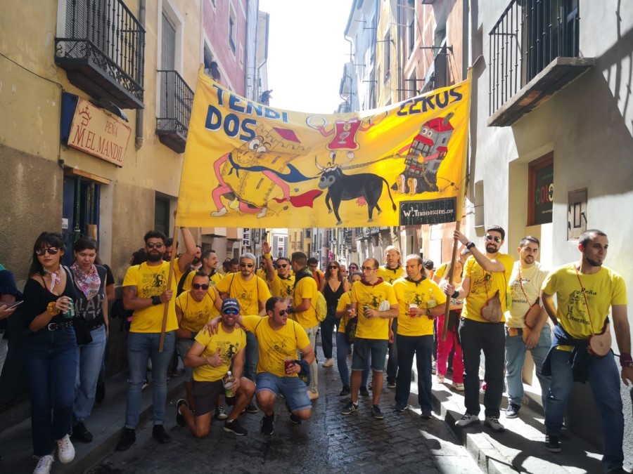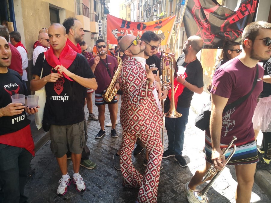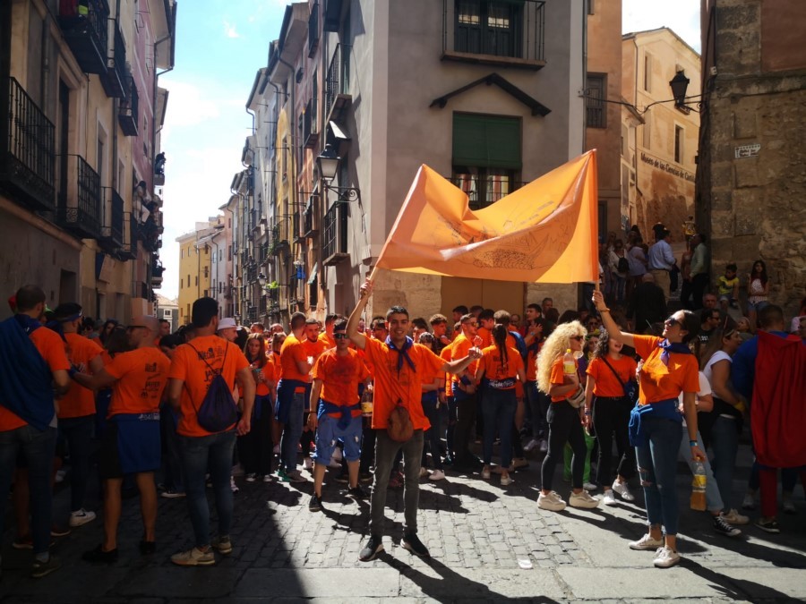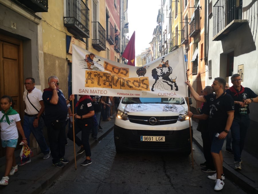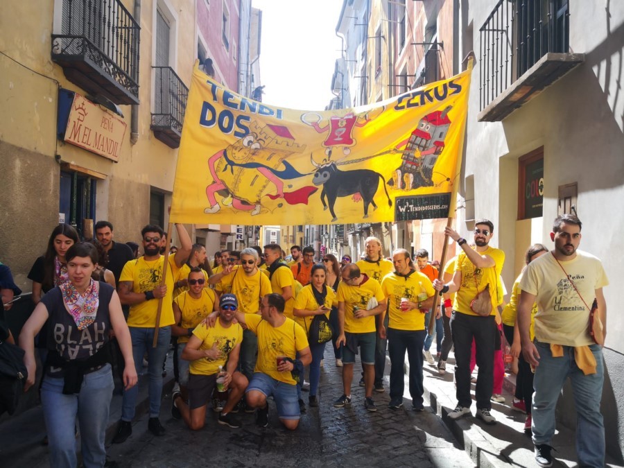 Las peñas llegan a la anteplaza para dar comienzo al pregón y con él a las fiestas de San Mateo 2022